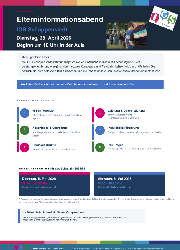 Bei unserer Sprechzeit an der IGS Schöppenstedt beantwortet Ihnen unser Jahrgangsleiter Herr Birla persönlich alle Fragen rund um unsere Schule und Schulform.