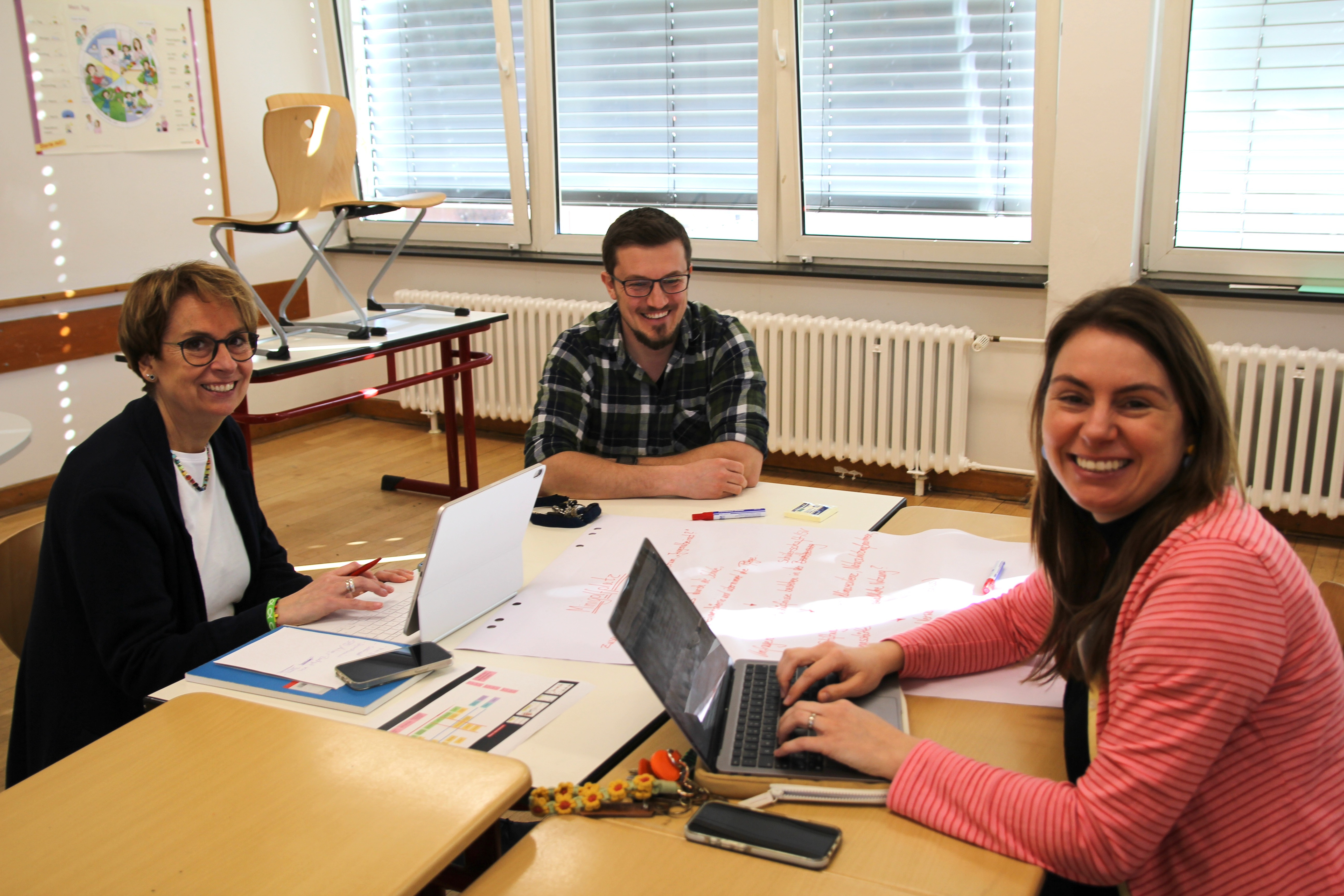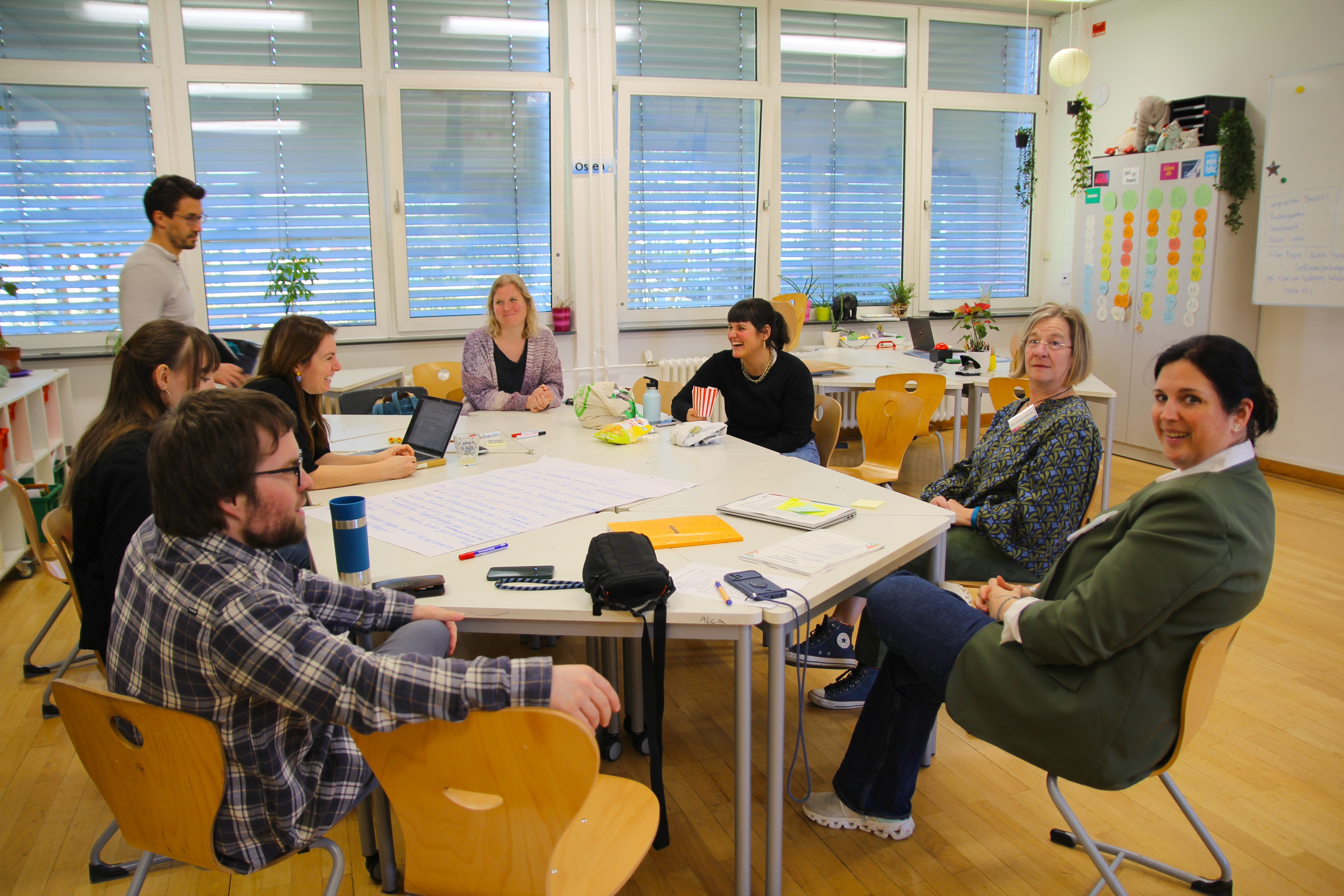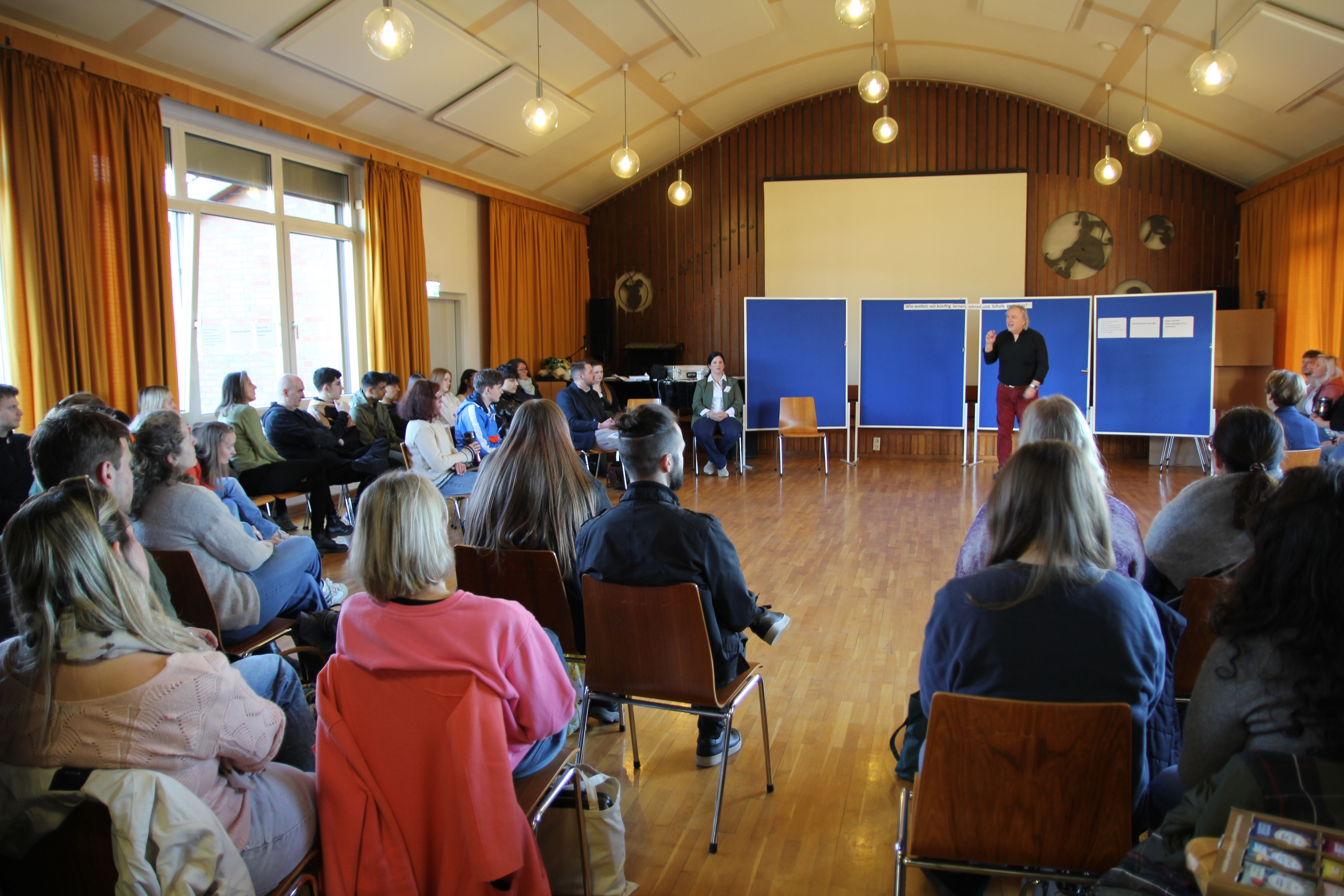 Das Besondere am Format: Eine feste Tagesordnung gab es nicht. Stattdessen brachten die Teilnehmenden ihre eigenen Fragen, Ideen und Anliegen ein. Wer ein Thema vorschlug, übernahm zugleich eine moderierende Rolle in der jeweiligen Gesprächsgruppe. So entstanden über den Tag verteilt zahlreiche, bunt gemischte Diskussionsrunden – zu Themen wie Unterrichtsformen, Schulorganisation oder auch zur Gestaltung des Schulgeländes.