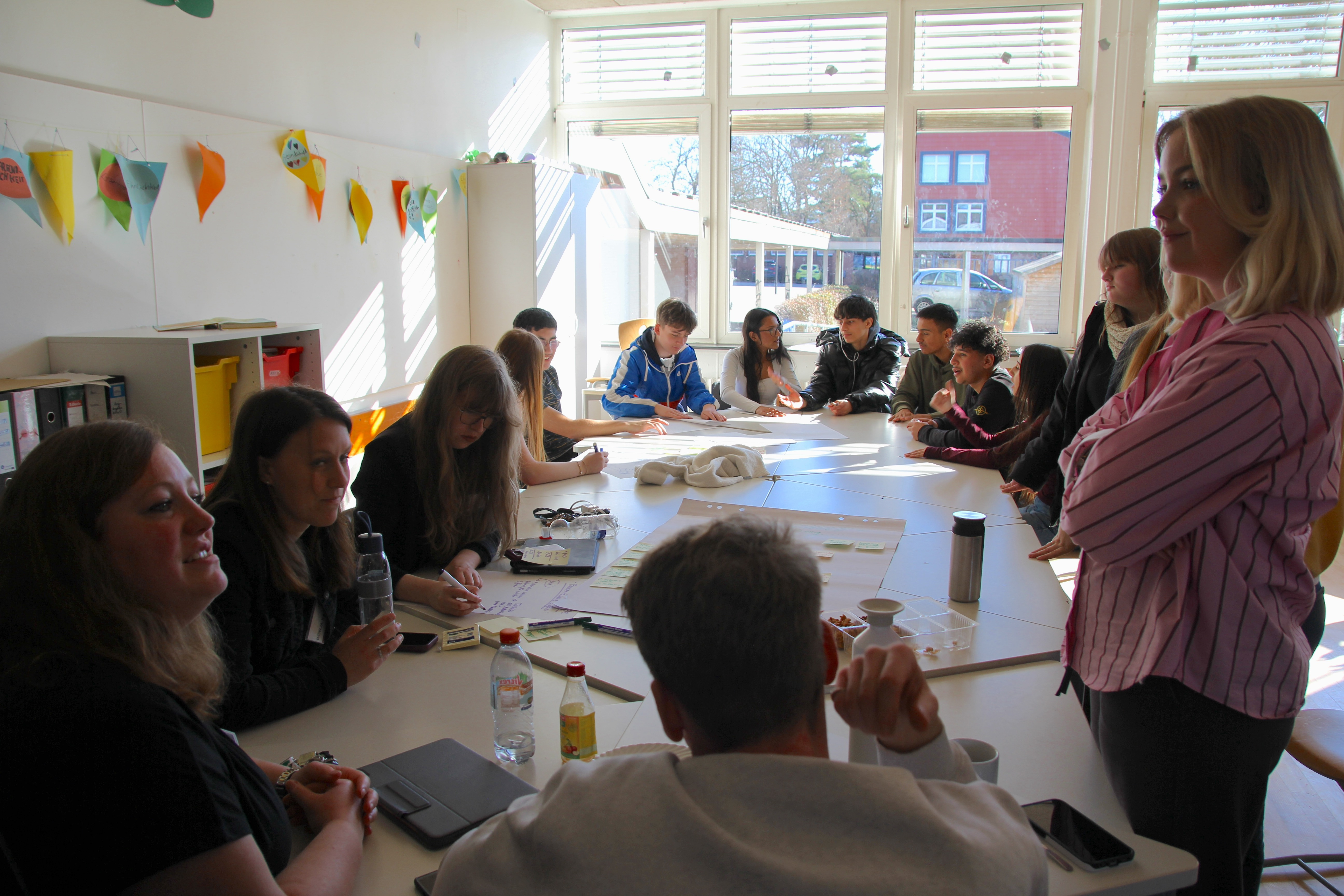Dabei durfte sich die IGS über das große Engagement der Bürgermeisterin Frau Föniger freuen, die sich den Tag extra freigehalten hatte und konkrete Vorschläge und Unterstützungsmöglichkeiten der Stadt Schöppenstedt einbrachte. Besonders engagiert beteiligte sich auch der 8. Jahrgang, dessen Schülerinnen und Schüler ihre Perspektiven sehr klar und engagiert formulierten. Ihnen lag vor allem die Gestaltung der Schule und des Hofgeländes als Lebensraum am Herzen. Ein Vorschlag, der viel Aufmerksamkeit erhielt, war beispielsweise die Idee eines multikonfessionellen Raums – eines Ortes für Meditation, Einkehr und Gebet, der allen offen steht.