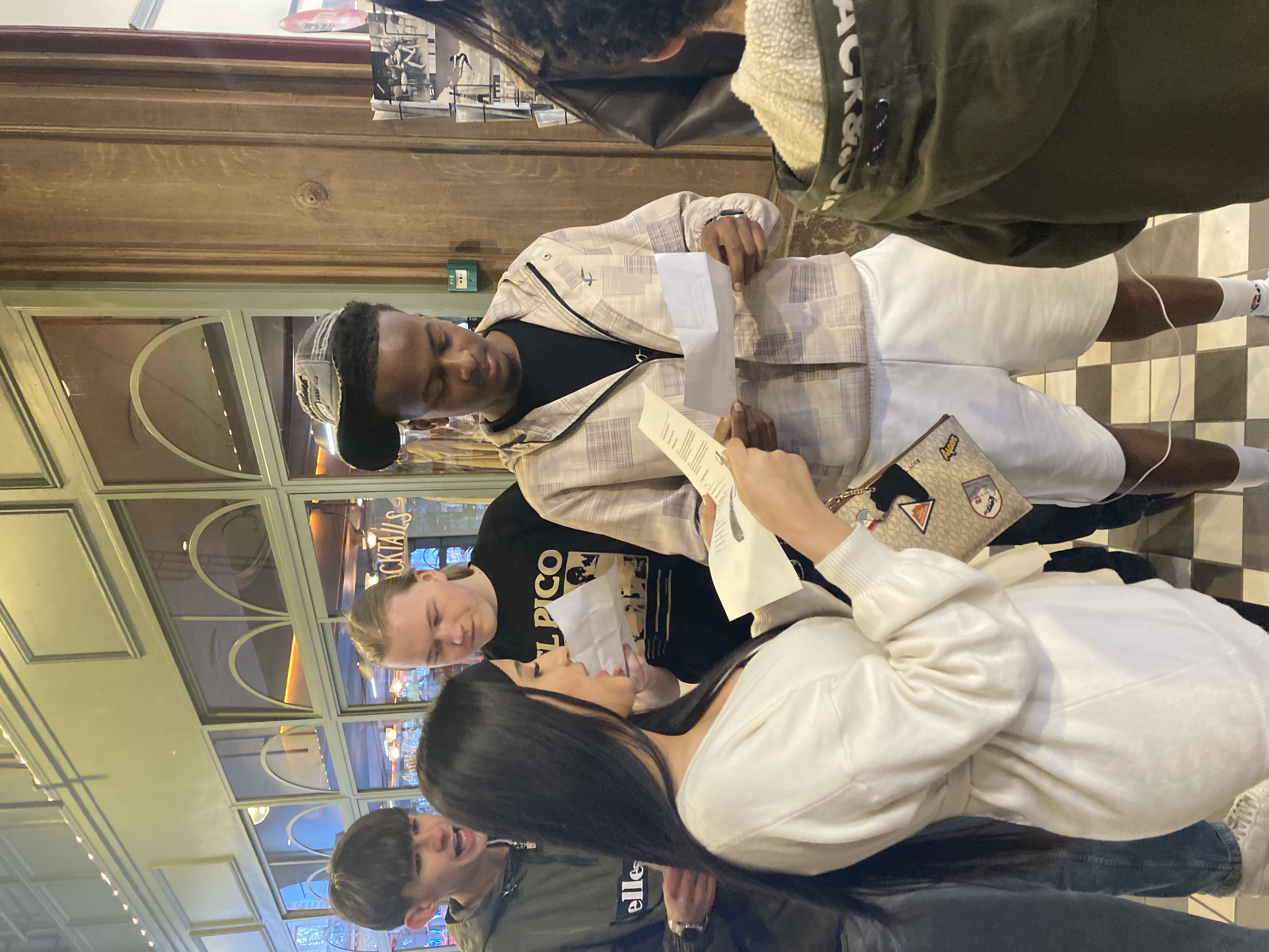 Ein besonderer Schwerpunkt der Erasmusfahrt lag in diesem Jahr außerdem auf dem Thema „Mode und Nachhaltigkeit“. Passend dazu besuchten die Schülerinnen und Schüler die Ausstellung in der La Galerie Dior, in der sie mehr über die Geschichte der Pariser Mode und die Handwerkskunst hinter der Haute Couture erfuhren. Dabei setzten sich die Jugendlichen auch mit Fragen nachhaltiger Produktion und verantwortungsbewussten Konsums auseinander und wurden angeregt, eigene nachhaltige Designentwürfe zu entwickeln. Ein weiteres Erlebnis war der Besuch des Musée Grévin, in dem die Schülerinnen und Schüler berühmten Persönlichkeiten aus Geschichte, Kultur und Mode begegnen konnten. Auch hier entstanden viele Gespräche über europäische und internationale Kultur, Medien und die Bedeutung von Vorbildern.