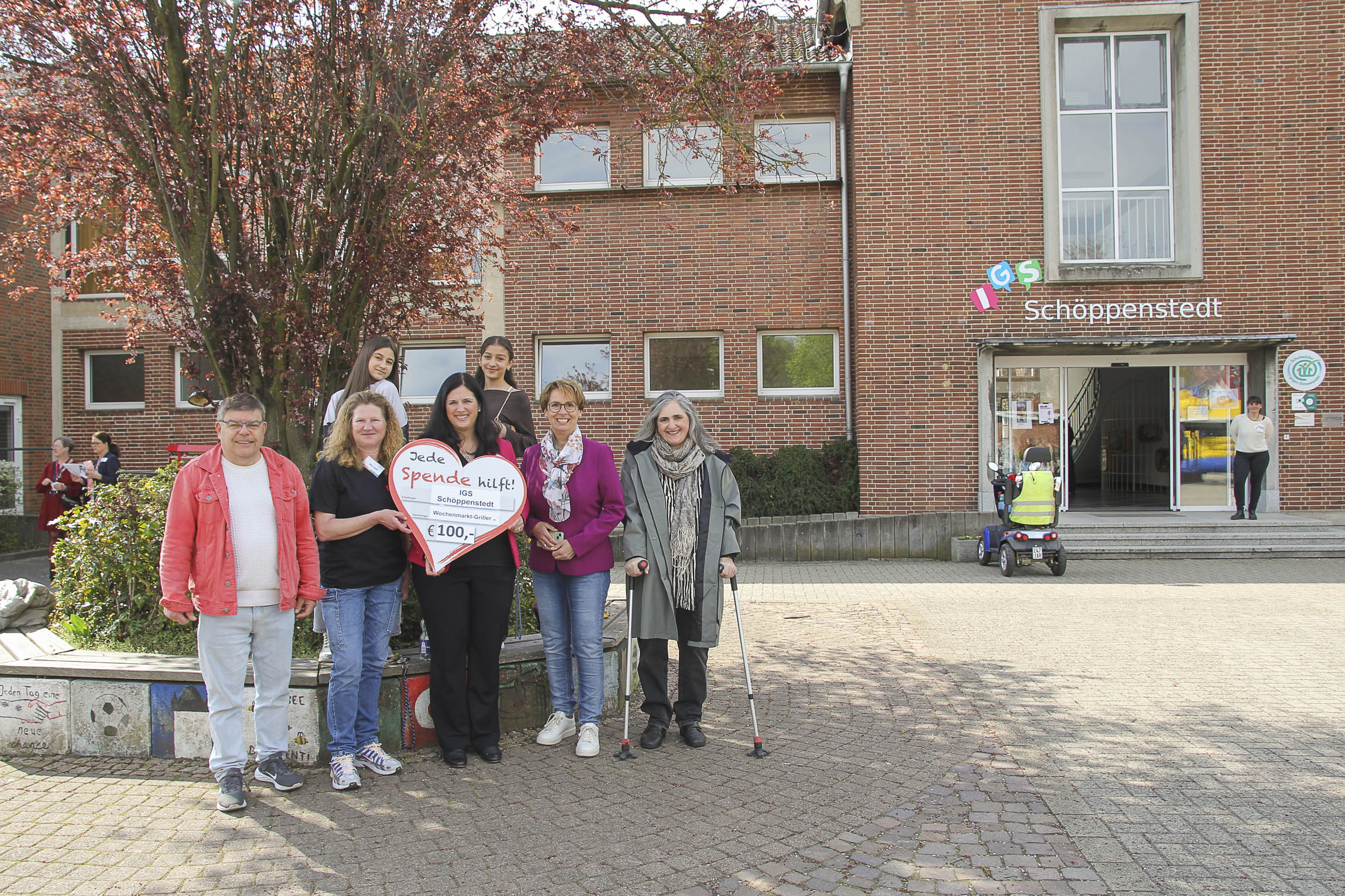 In der Mensa hatten die Gäste abschließend Gelegenheit, bei Kaffee, Kuchen, Waffeln und Sandwiches, die von unseren fleißigen Schülerinnen und Schüler zubereitet und verkauft wurden, ins Gespräch zu kommen, Fragen zu stellen und sich weiterführend zu informieren. Sowohl die Schulleiterin Heike Grebe als auch der Förderverein standen hierfür zur Verfügung. Unterstützt wurde die IGS zudem von Vertretern der regionalen Politik: so stand Schöppenstedts Bürgermeisterin Andrea Föniger tatkräftig am Würstchenstand und überreichte der IGS Schöppenstedt zudem gemeinsam mit den „Wochenmarkt-Grillern“ ein großzügiges Spendenherz über 100 Euro. Sebastian Niehoff, Kandidat für das Bürgermeisteramt in der Samtgemeinde Elm-Asse, unterstützte mit großem Einsatz den Kaffee- und Getränke-Verkauf. Und auch der SPD-Landratskanditat Martin Albinus war unter den Besuchern und zeigte sich sehr interessiert am Schulleben.