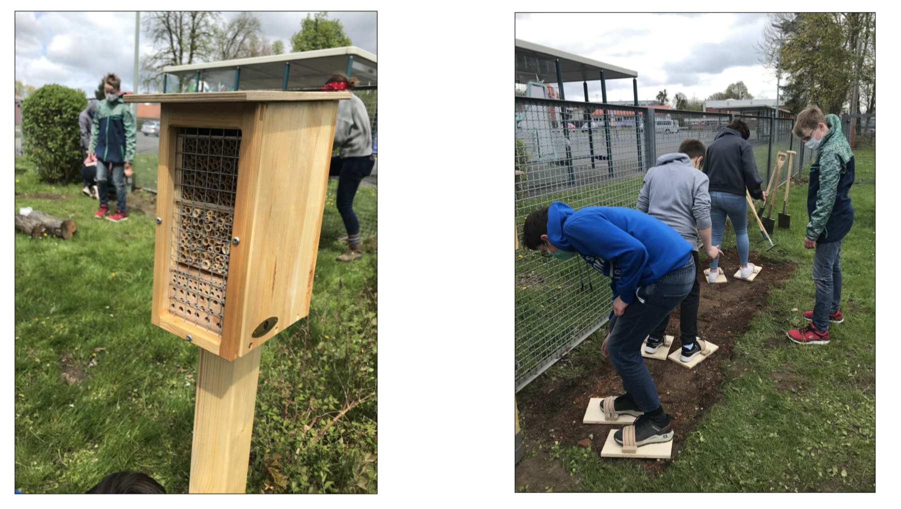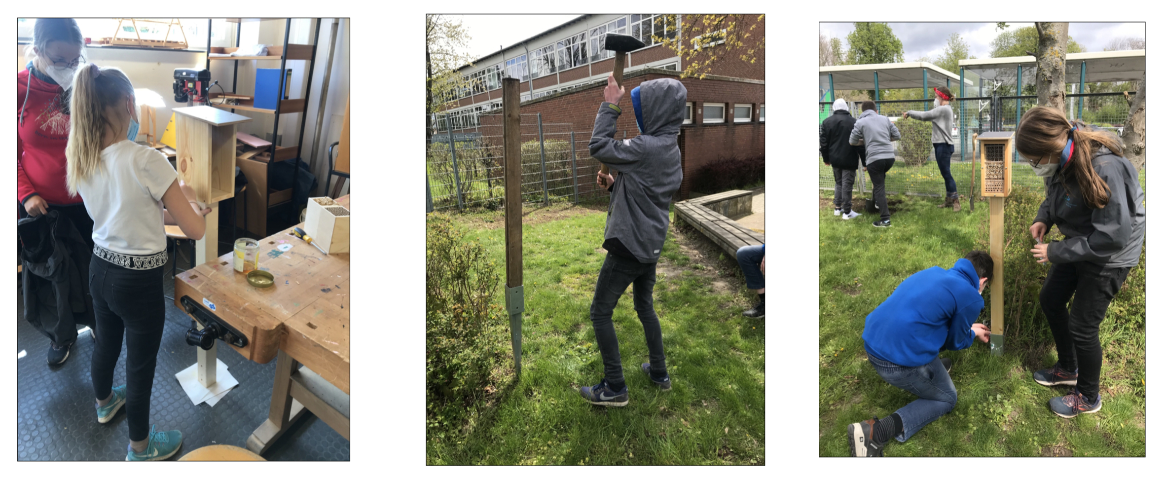 Einen großen Dank gilt daher an alle TeilnehmerInnen des Workshops, die damit das Thema Nachhaltigkeit, was bei der IGS im Schulprogramm verankert ist, tatkräftig unterstützt haben. Jetzt hoffen alle erstmal auf das entsprechende Wetter, so dass die ersten Insekten in ihr neues Hotel einziehen können und damit die IGS nun auch als Schule mit eigener Hotelanbindung einen weiteren Beitrag zum Umweltschutz leisten kann.