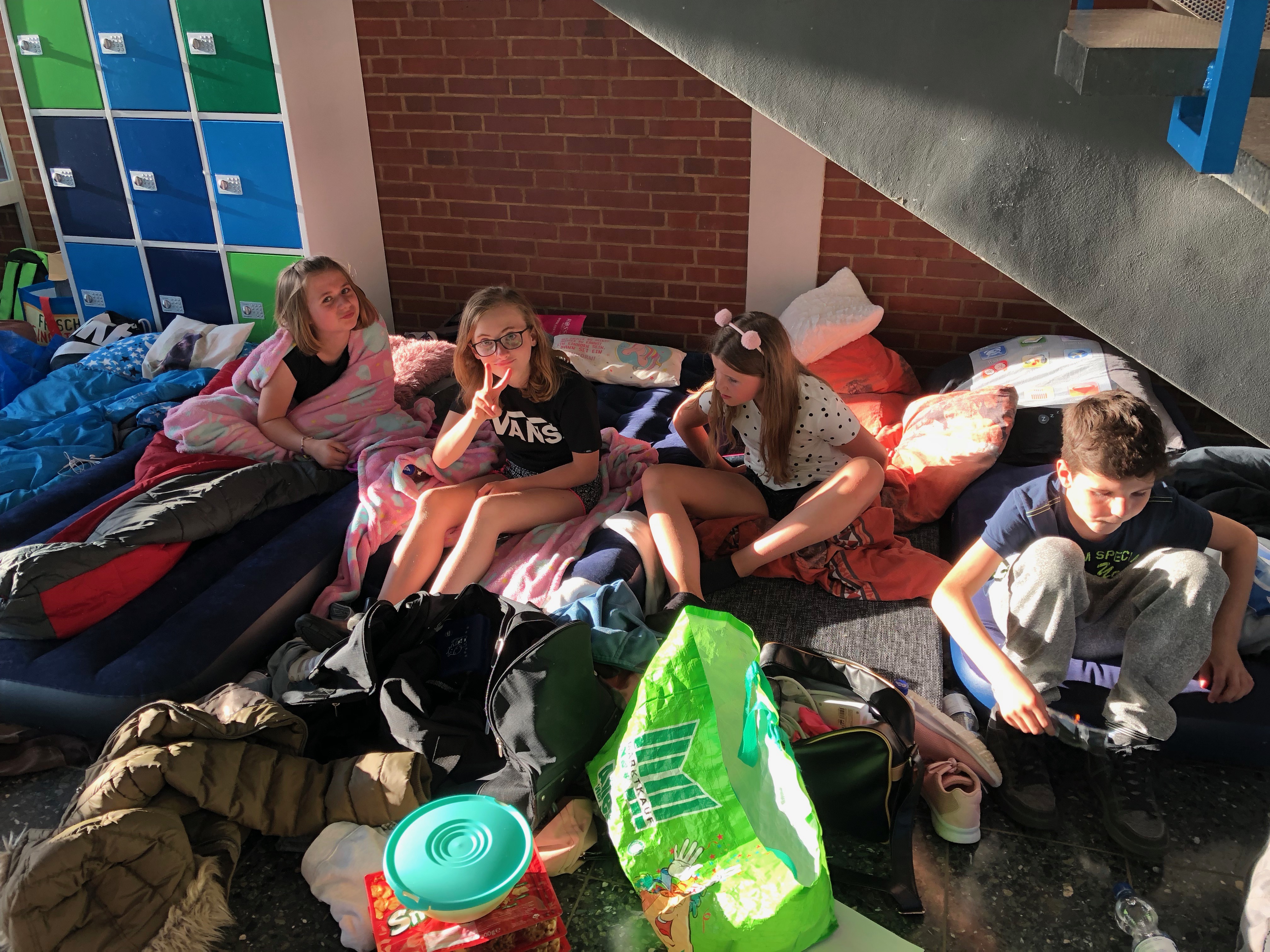 Schlafplätze im Schulflur